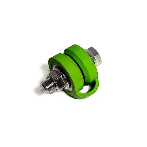 Each silicone bushing is reinforced with a stainless steel flat washer to prevent compression and distortion when tightening the hardware. This maintains proper clamping force while allowing controlled flex — reducing vibration without sagging or premature wear.